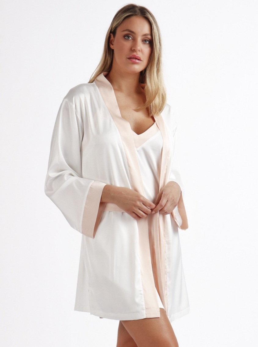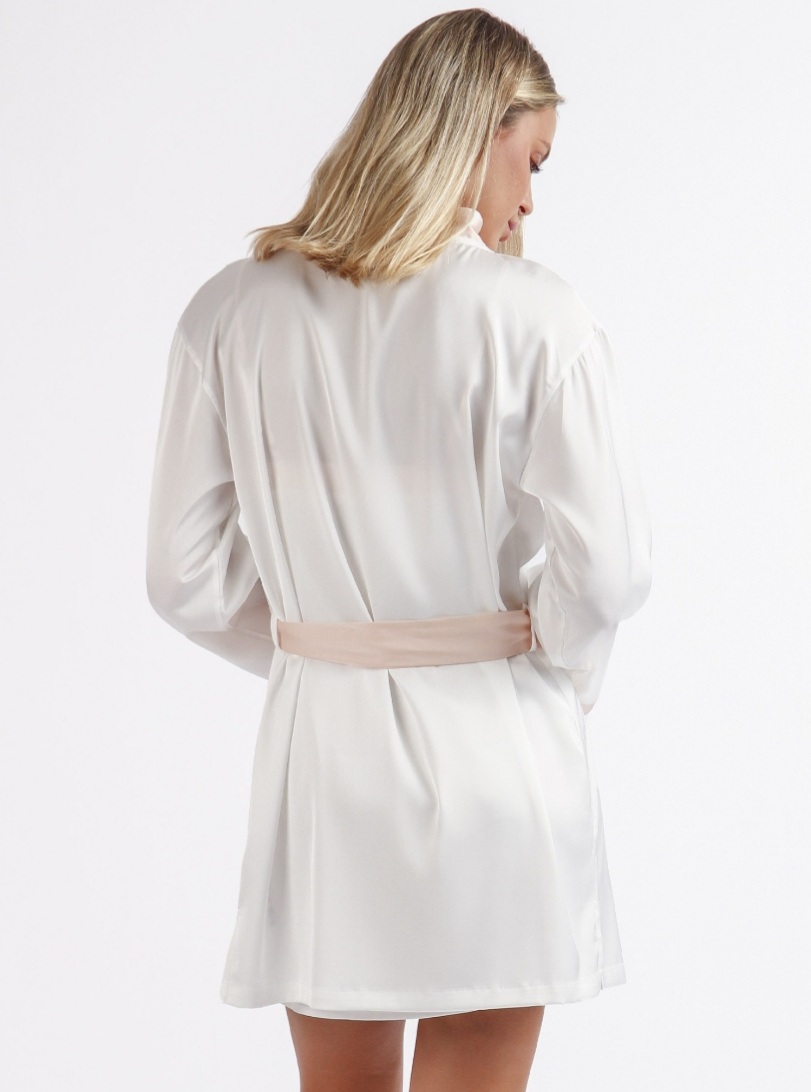 BATA DE TELA SATÉN PARA NOVIAS ADMAS COLOR BLANCO