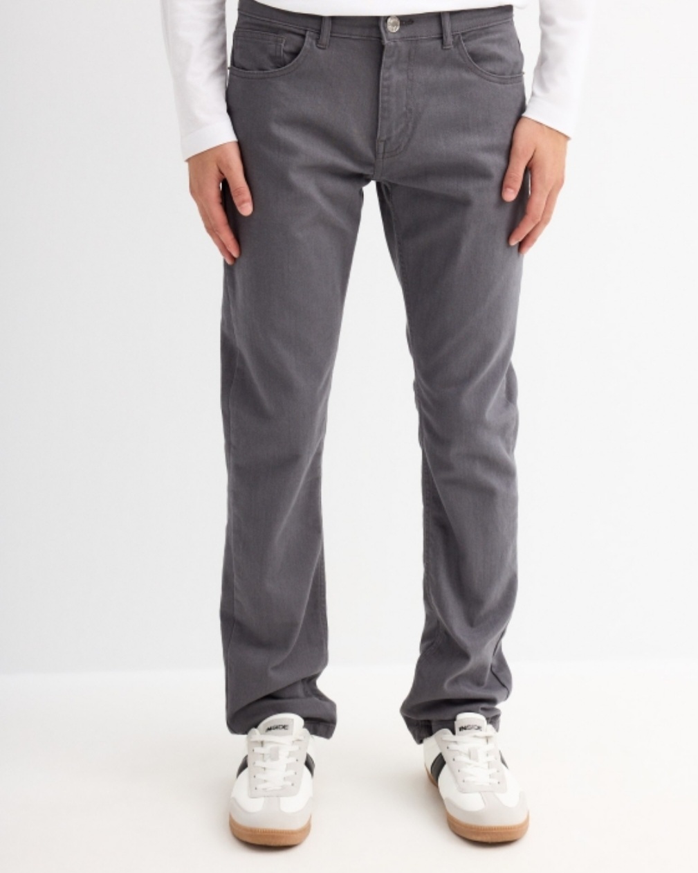 Jeans de cinco bolsillos en denim de algodón con ligero stretch para una comodidad óptima.Cintura estándar con cierre de cremallera con botón. Estos jeans se ajustan perfectamente para jóvenes que desean un look moderno y desenfadado .Combínalos con cualquier camiseta y zapatos deportivos para look casual.