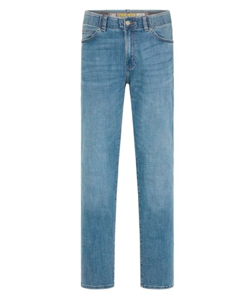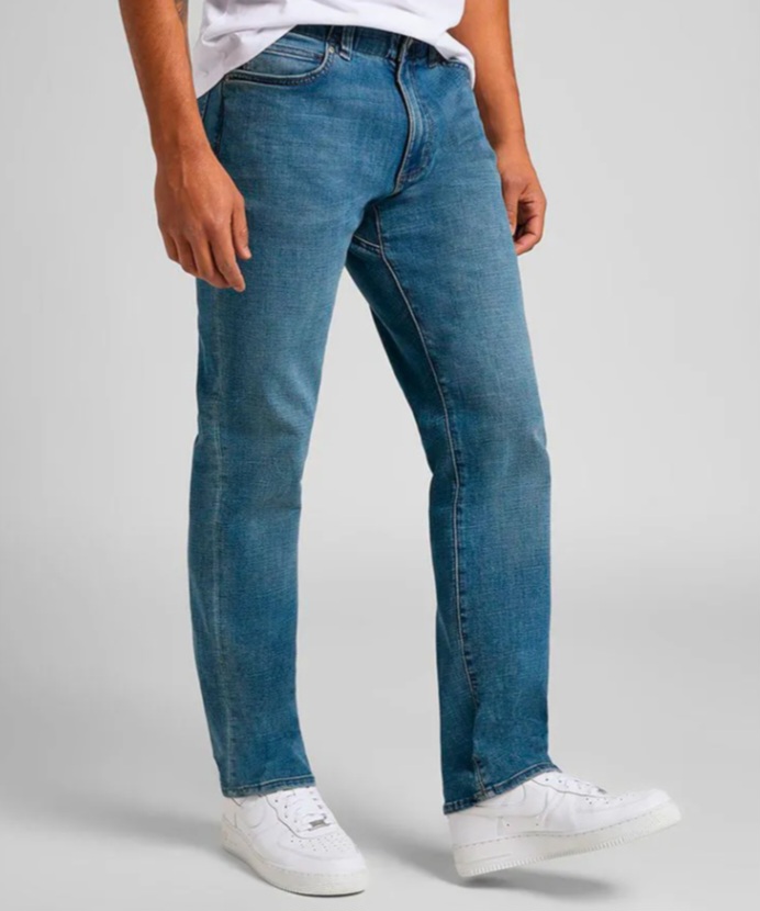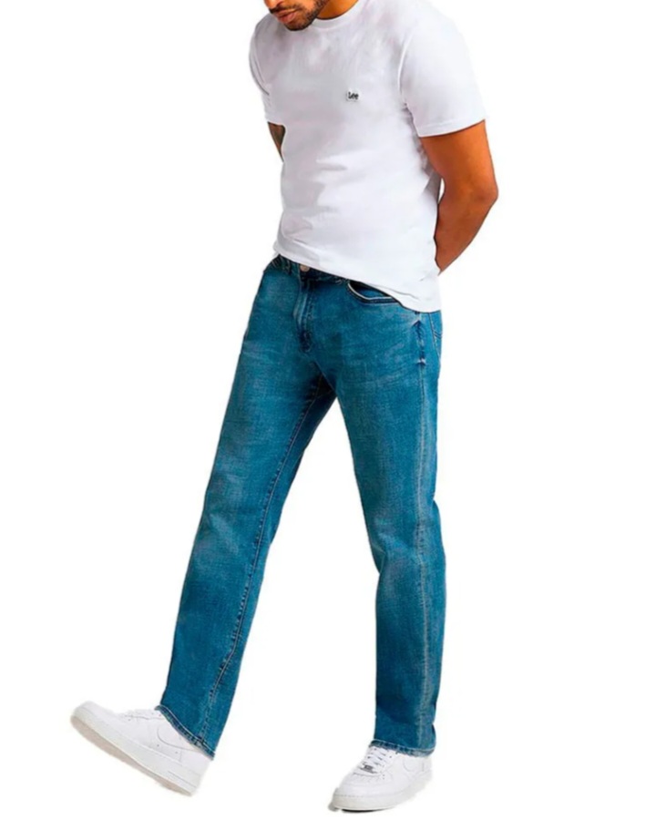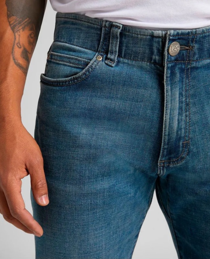 Estos pantalones vaqueros de color azul con zonas desgastadas y sutiles líneas de arrugas te ofrecen un auténtico denim veraniego.