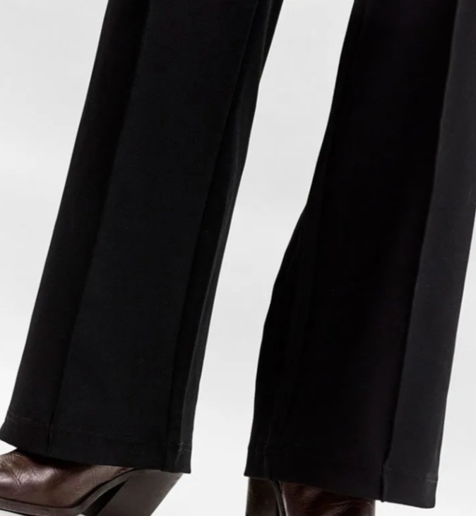 Pantalón slim con tiro alto, cintura elástica, pliegues en la pierna y corte ancho.