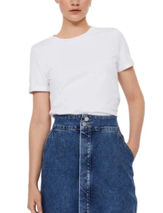 Camiseta básica sencilla de algodón orgánico. Todo el mundo necesita un poco de básico en su armario y esta camiseta sería el complemento perfecto. Combínalo con un par de jeans y un blazer para un look más elegante para todos los días.